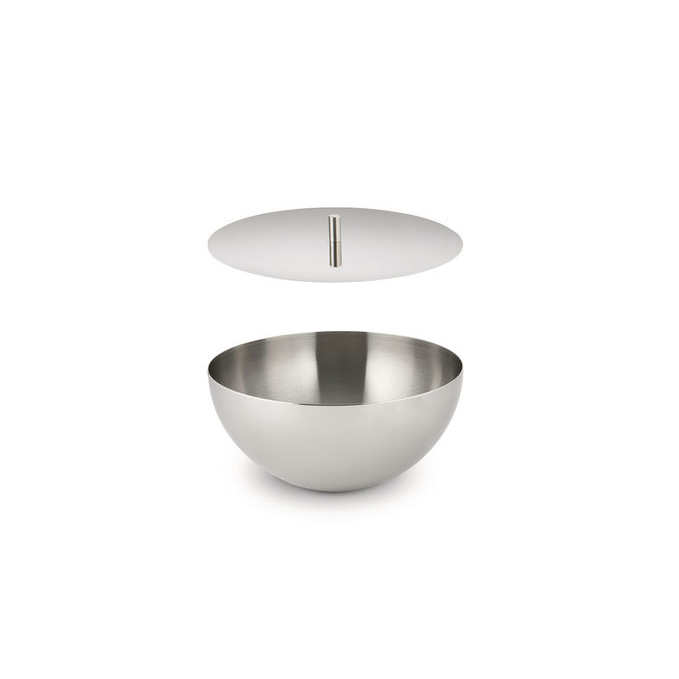 Contenitore in acciaio inox con effetto lucido con coperchio.