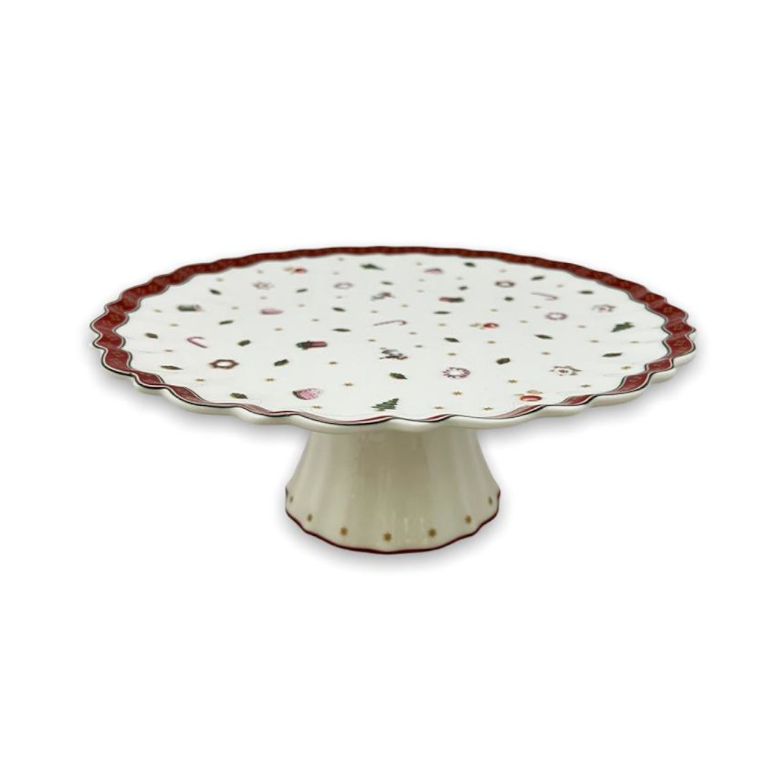 Alzata con piede porta dolci in porcellana premium decorata. Diametro cm 28 circa Altezza cm 11 circa Codice: 14-8585-2295